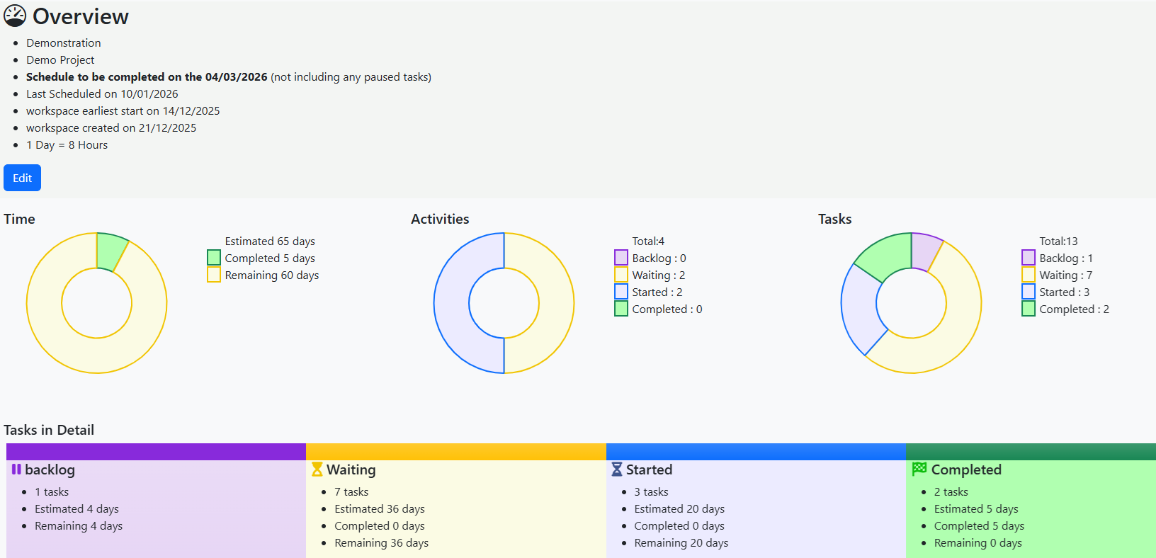 Quickly show the overall process and postiton of your Activities and Tasks.